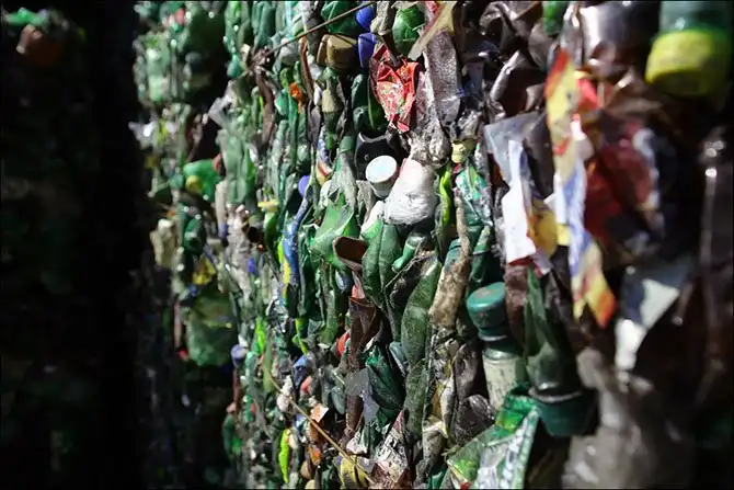 На входе обычный городской поток мусора — мешанина из объедков, пластиковых бутылок и банок, стекла, пакетов, разнообразной грязи и досок. На выходе — вот такие аккуратные блоки из пластика, металла, бумаги и полиэтилена, которые скоро снова пойдут в дело и этим помогут уменьшить вред природе.