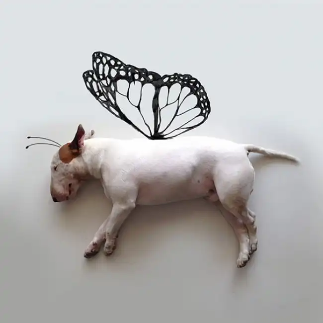 Когда Рафаэля Мантессо на его 30-й День рождения бросила жена, он не стал унывать, а собрался силами и занялся новым проектом, который принес известность ему и его псу Джимми Чоу. А началось все с того, что жена забрала из дома Рафаэля практически всю мебель, фотографии и предметы декора. Пустые белые стены и любимая собака вдохновили этого парня на творческий проект, благодаря которому на страницу этой парочки в Instagram подписалось уже свыше 200 000 человек. В октябре выйдет целая книга, в которой будут представлены лучшие снимки Джимми.