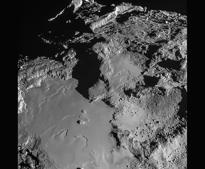 Поверхность кометы Чурюмова — Герасименко с расстояния 15,3 км. (Фото Rosetta / NavCam):