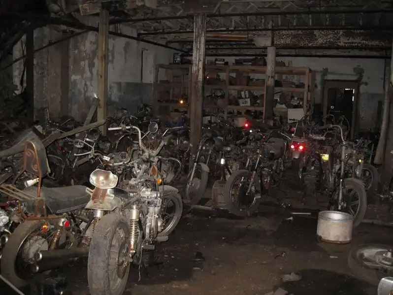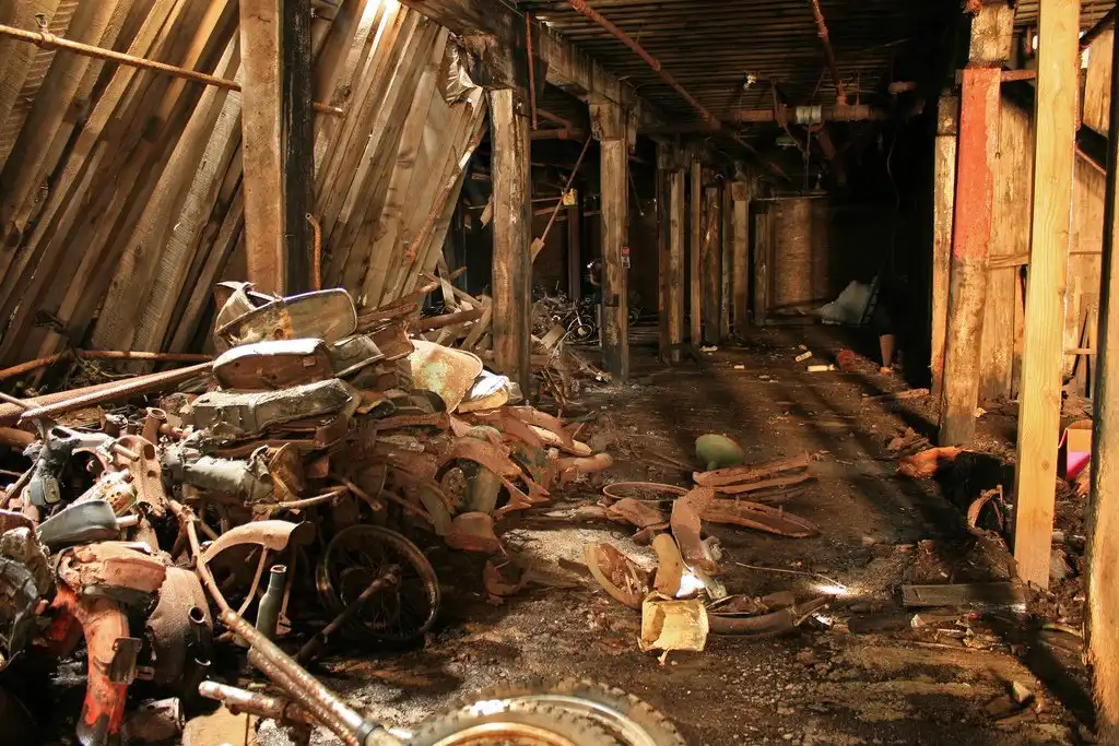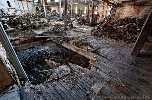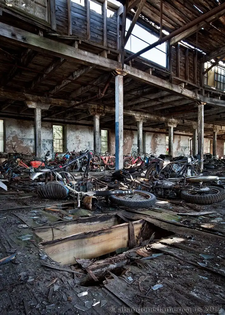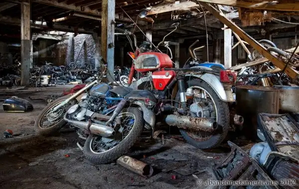 В 90-х Уолтеру стукнул восьмой десяток, он больше уже не мог заниматься своим любимым делом и продал здание вместе со всем содержимым другому мотоэнтузиасту по имени Фрэнк. Тот продолжил бизнес, но к 2010 году здание стало приходить в негодность и разрушаться. Денег на дорогостоящий ремонт у Фрэнка не было. После того, как обрушилась часть крыши, городские власти запретили доступ в помещения, а после и вовсе решили забрать здание себе вместе со всем содержимым по причине не уплаты налога на недвижимость. Последовало суд, который Фрэнк выиграл и ему дали месяц на вывоз всего имущества. Он распродал и забрал из здания все, что смог, но запчастей было так много что их попросту некуда было девать и многое пришлось оставить гнить внутри. Когда выделенный судом месяц кончился, то здание перешло в собственность города, те закрыли двери и повесили на них замок, а о мотоциклах внутри просто забыли. Никому не нужное и заброшенное здание продолжило разрушаться. Из дыр в крыше текла вода, от чего начали гнить межэтажные перекрытия. В какой-то момент часть пола второго этажа вместе с мотоциклами обрушилась и завалила проход. В таком виде здание простояло до лета 2013 года, а его единственными посетителями были крысы, птицы и любители заброшенных мест.
