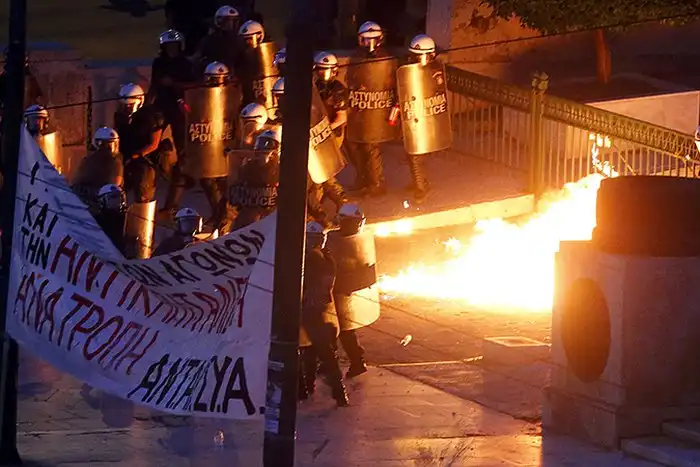 В Афинах между полицией и демонстрантами, протестующими против жестких мер экономии и реформ, начались стычки. На площади Синтагма собралось около 12 000 человек, которые начали забрасывать полицейских бутылками с зажигательной смесью. К зданию парламента, где депутаты рассматривают принятие условий кредиторов, согласившихся предоставить Греции минимум 82 миллиарда евро в течение трех лет без списания предыдущих долгов, стянут спецназ, полиция применяет слезоточивый газ. Сообщается, что люди продолжают прибывать, а основной их наплыв ожидается к 24:00, когда депутаты должны объявить свое решение. Стоит отметить, что в ходе недавнего референдума, большинство граждан страны высказалось против реформ, направленных на жесткую экономию.