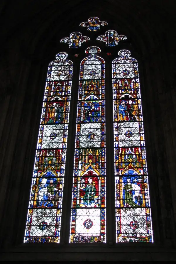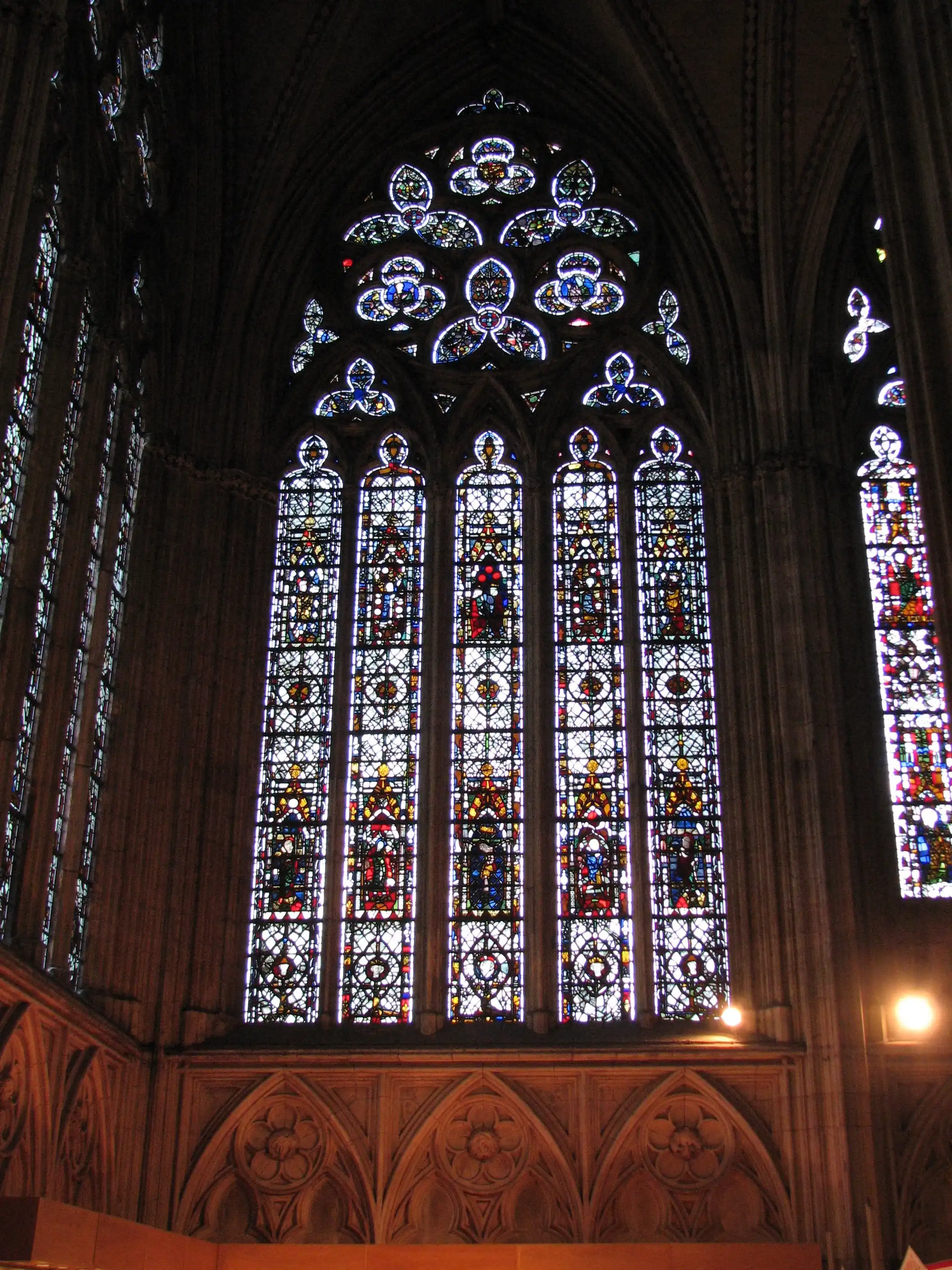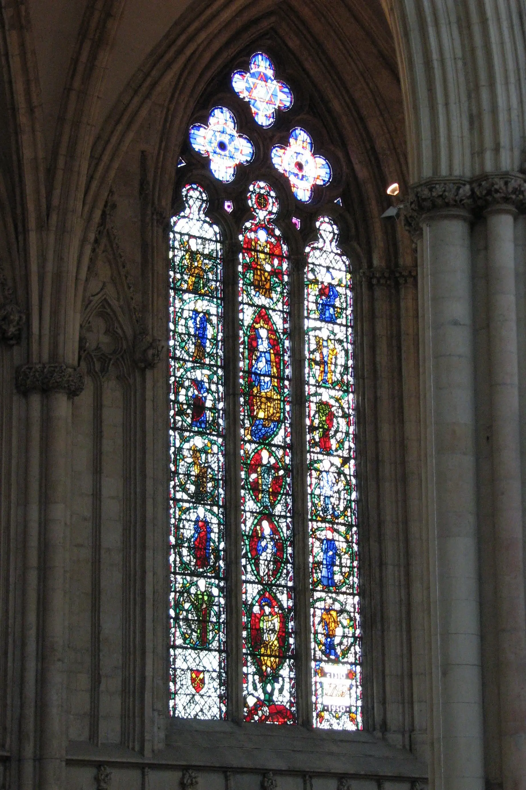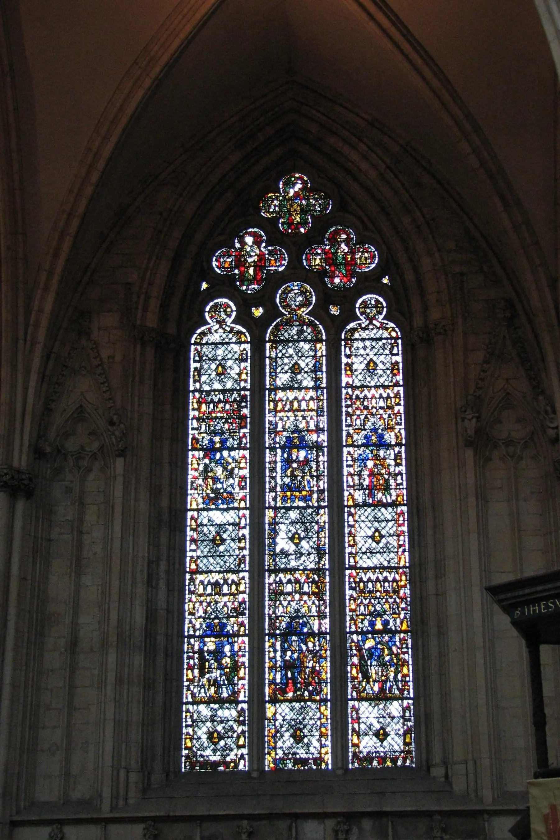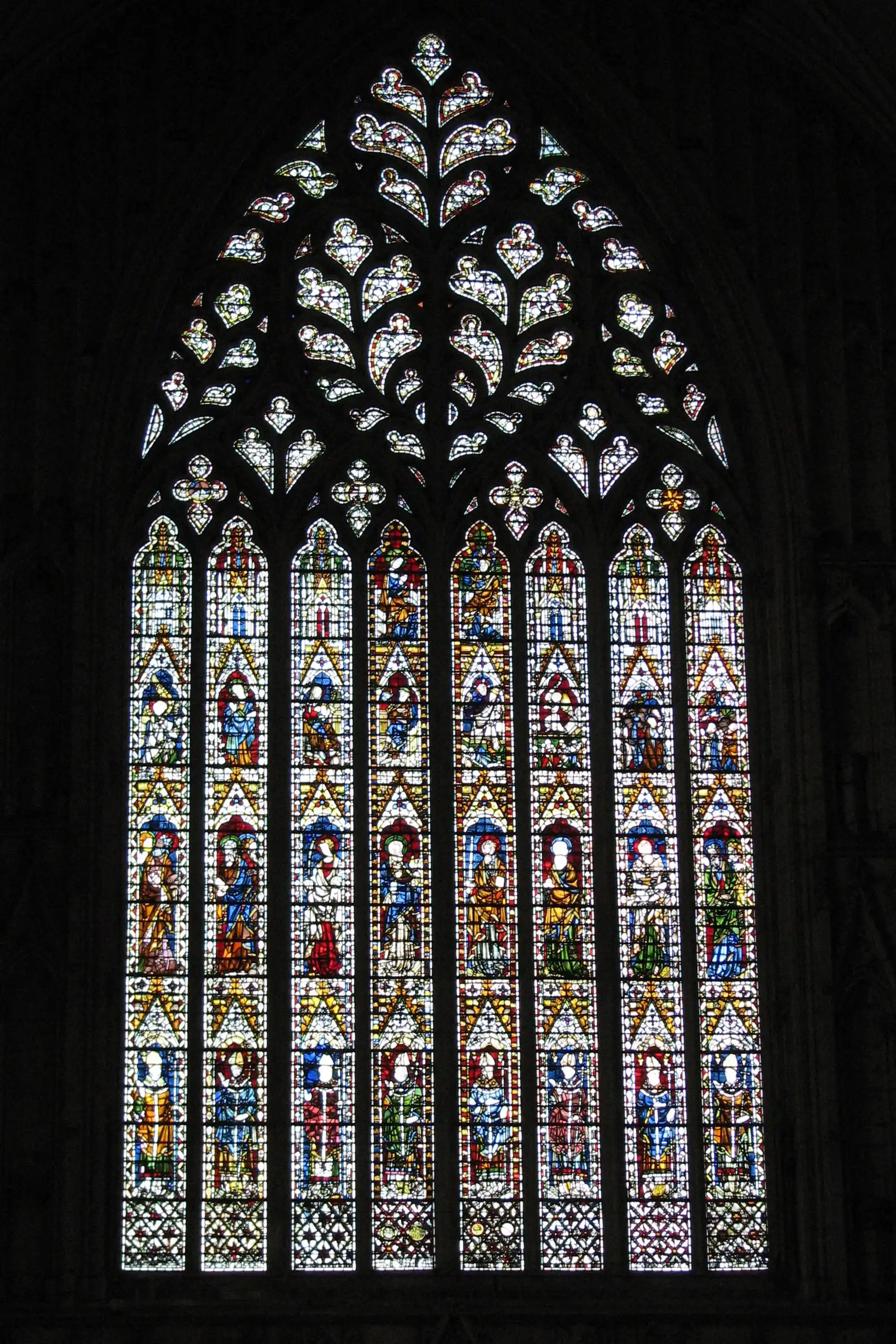 В Йоркском кафедральном соборе – крупнейшее собрание витражей в Британии, некоторые относятся к концу XII в. Как правило, стекло окрашивалось в процессе изготовления с помощью окислов различных металлов, затем над ним работали художники. Когда рисунок уже был готов, стекло разрезалось, а его кромки подтёсывали до нужной формы. Детали изображения рисовали на стекле краской на основе оксида железа, которая при обжиге прочно приваривалась к стеклу. Отдельные части витража соединяли свинцовыми перемычками, чтобы получить законченное окно.