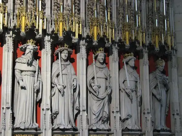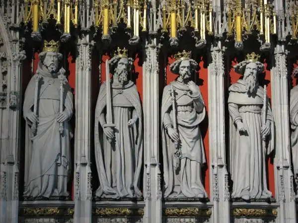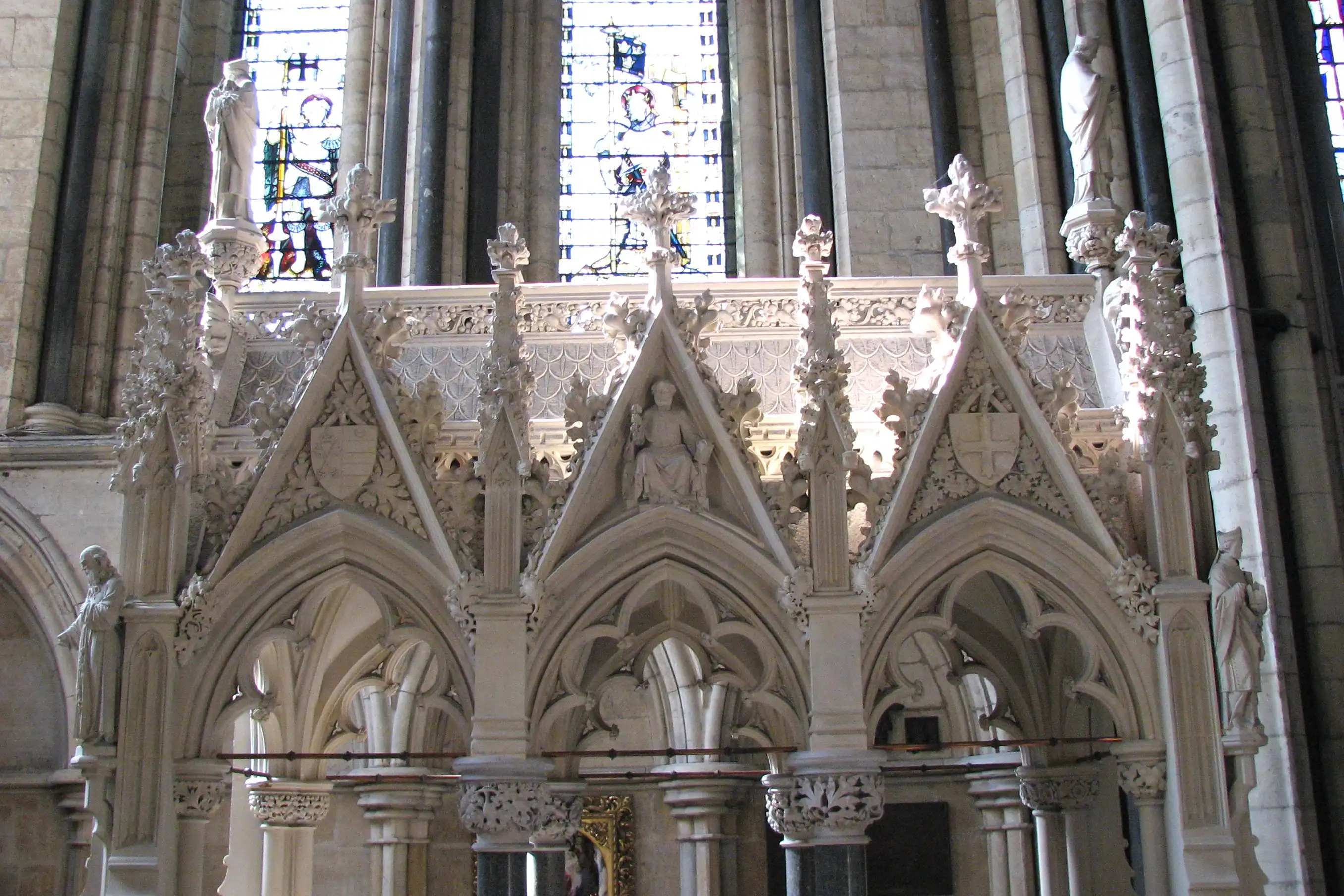 На отделяющей хоры от нефа каменной галерее XVв. Стоят статуи королей Англии от Вильгельма I до Генриха VI.