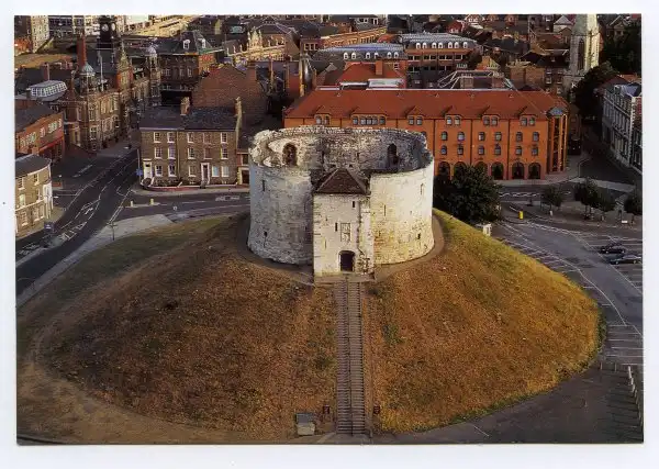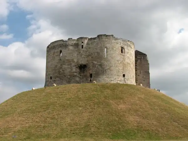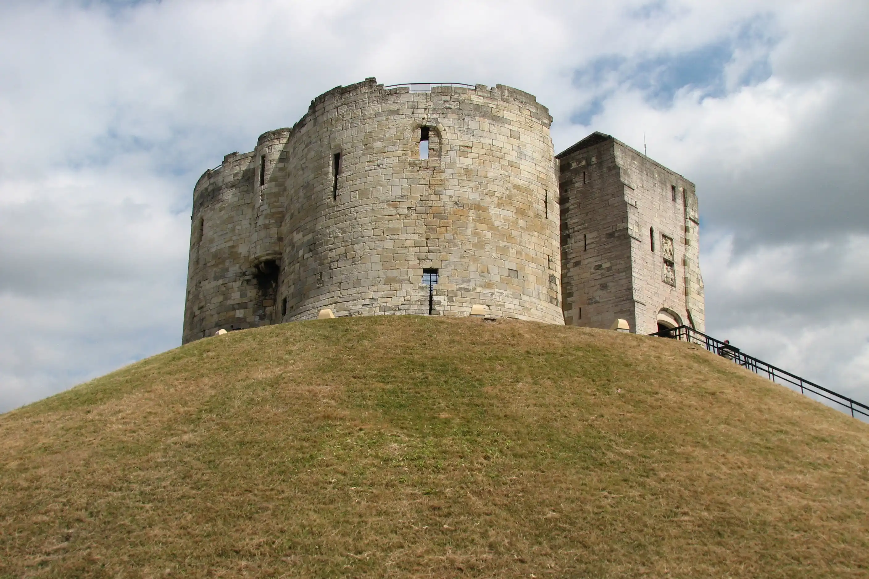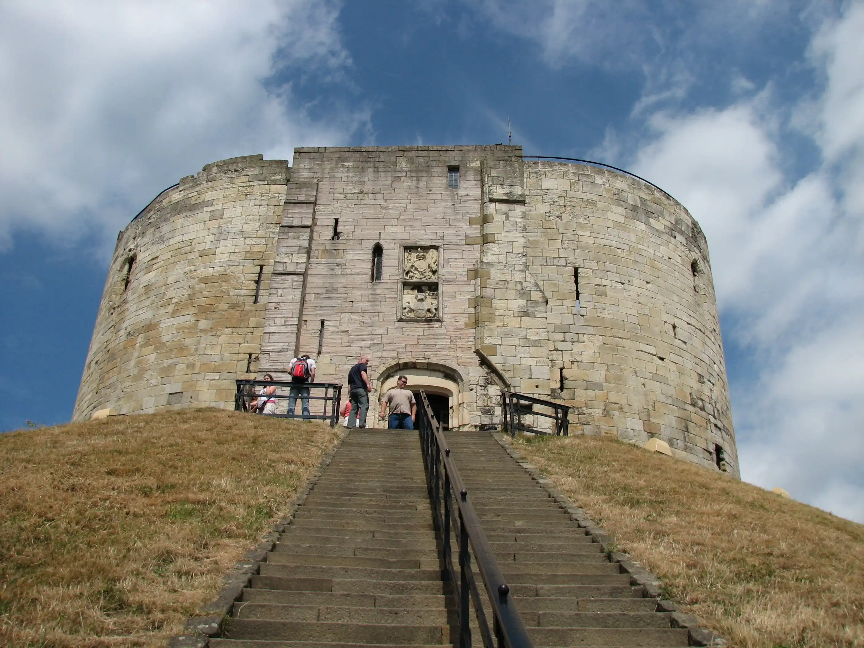 На вершине этого насыпного холма до 1190 года стоял замок Вильгельма завоевателя. Замок сгорел в пожаре, и на его месте в XIII веке построили этот, получивший название Клиффорд-Тауэр по фамилии семьи де Клиффорд, конюших замка.