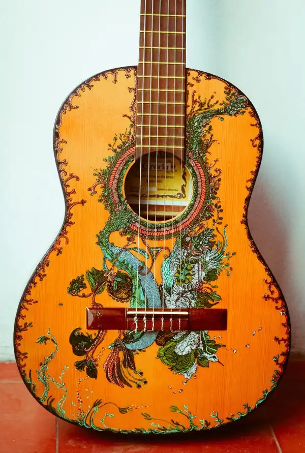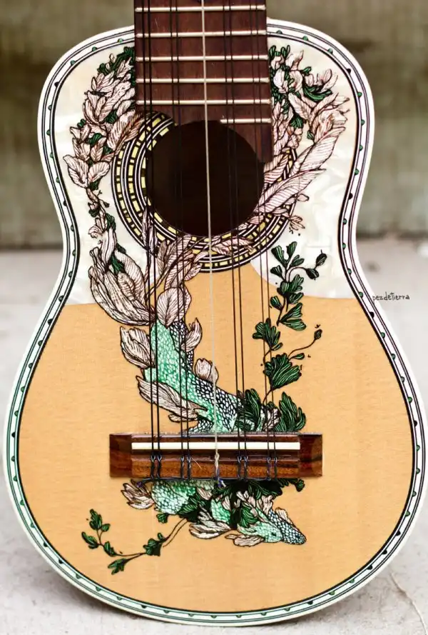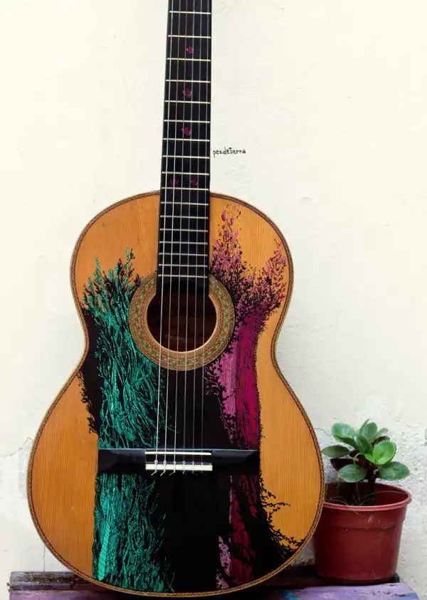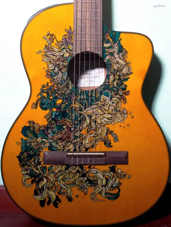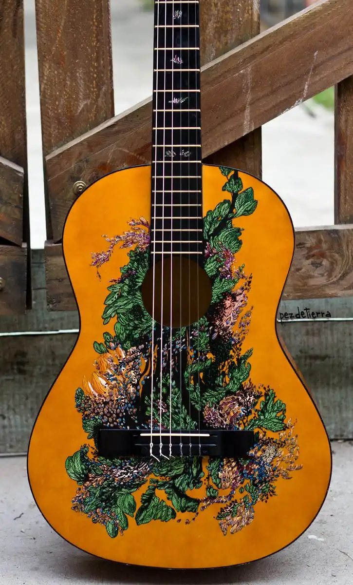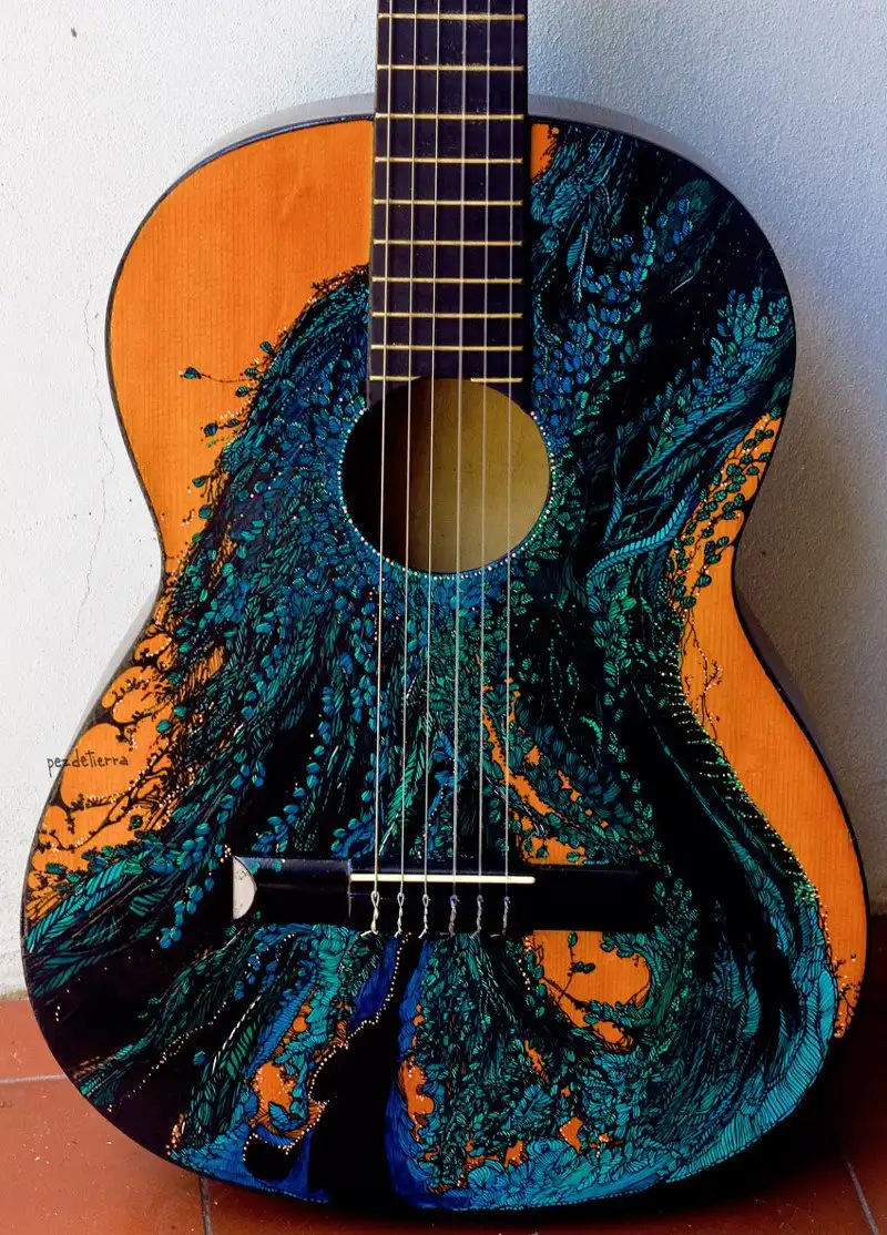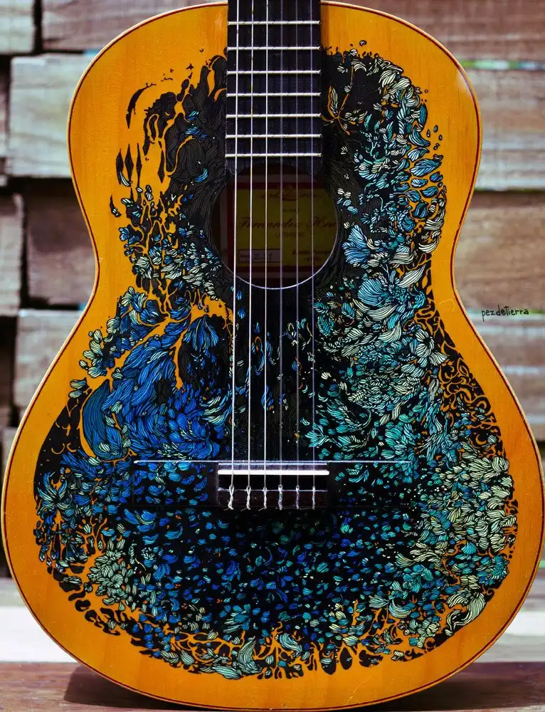 Аргентинский художник Пез Де Тиерра занимается росписью самых разнообразных предметов. Он может покрыть узорами всё, но больше любит заниматься росписью гитар. Пез Де Тиерра - это псевдоним, который с испанского можно перевести, как "земляные рыбы".