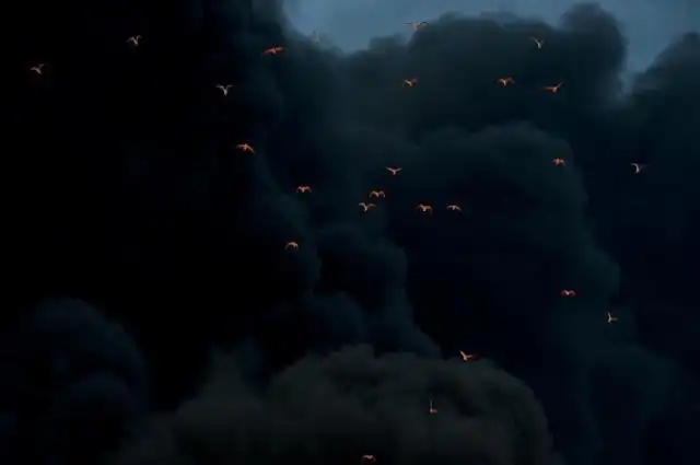 Пруд, замерзший причудливыми геометрическими фигурами.