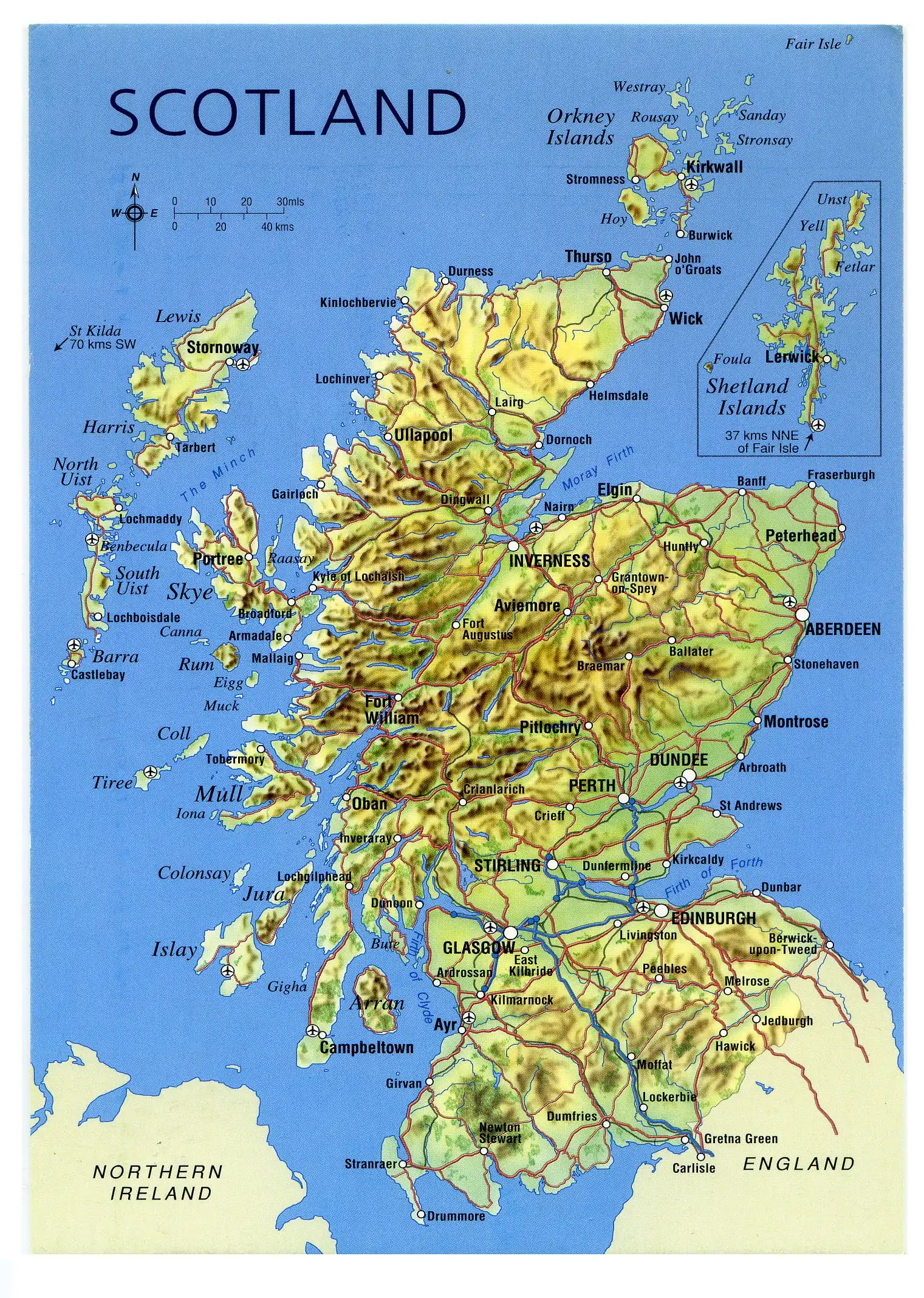 Мы с Вами въезжаем в Шотландию со стороны Англии. Необходимо отметить, что Шотландцы пришли сюда из Ирландии в 6-м веке, и ассимилировали или истребили пиктов – население Шотландии, жившее здесь со времён каменного века.