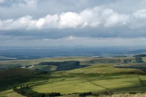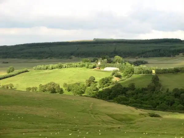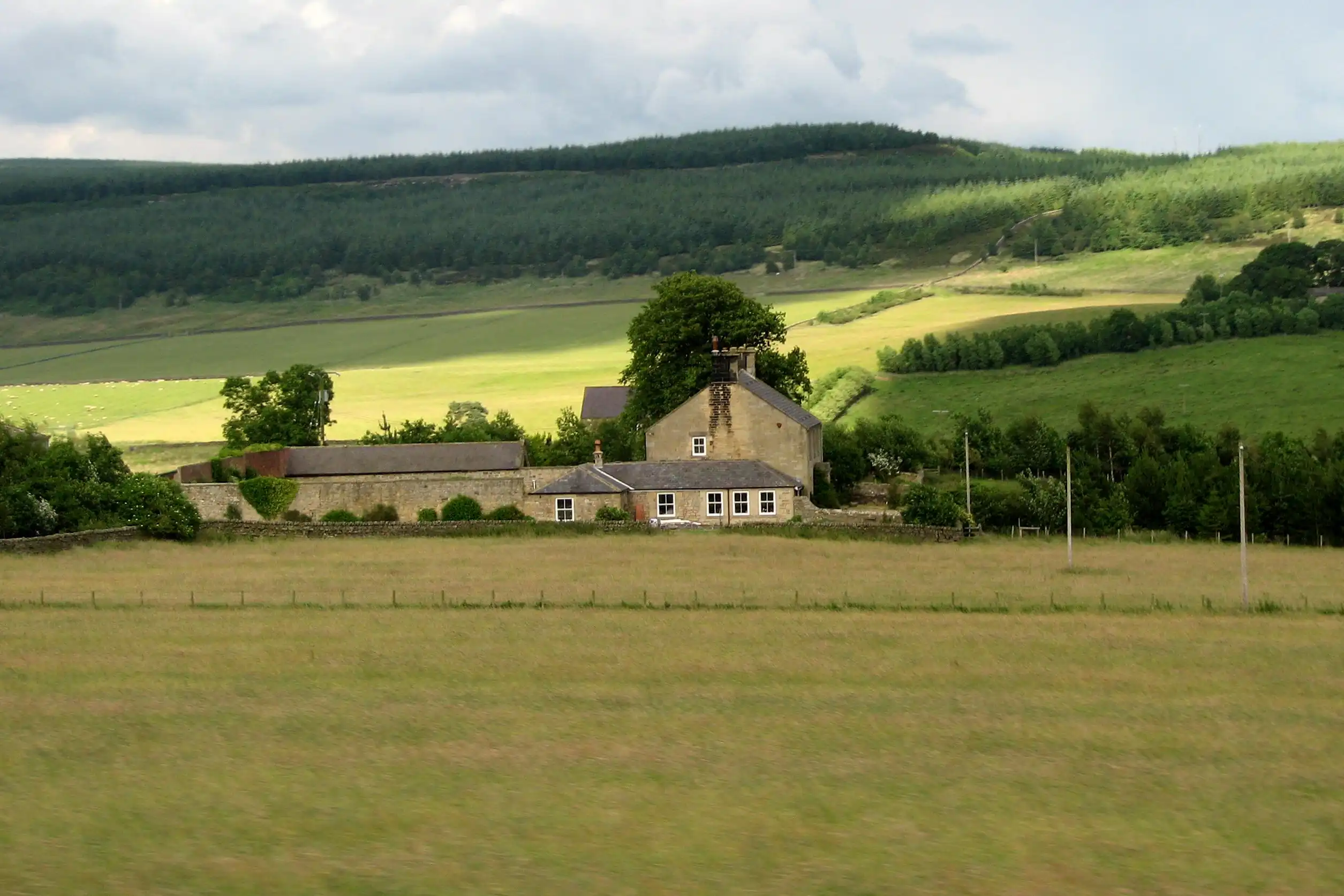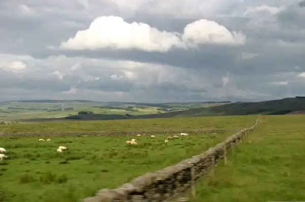 Я фотографировал из машины – это мы ещё едем по территории Англии, но уже очень близко к Шотландии. Белые пятнышки на траве – это овцы.