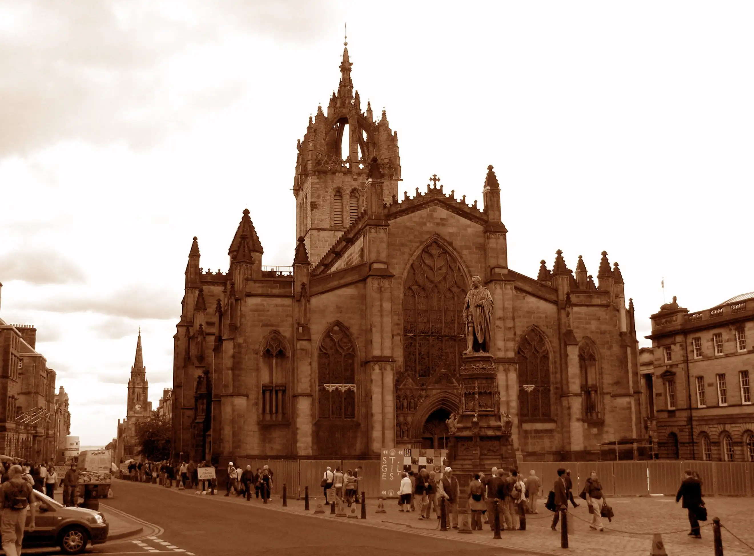Вот собор Св.Жиля. Официально собор считается главной пресвитерианской церковью Эдинбурга. Хотя церковь находилась в юрисдикции епископа в XVII веке, именно отсюда Джон Нокс управлял шотландской Реформацией, настаивая на индивидуальном богопочитании, освобождённом от власти епископов.