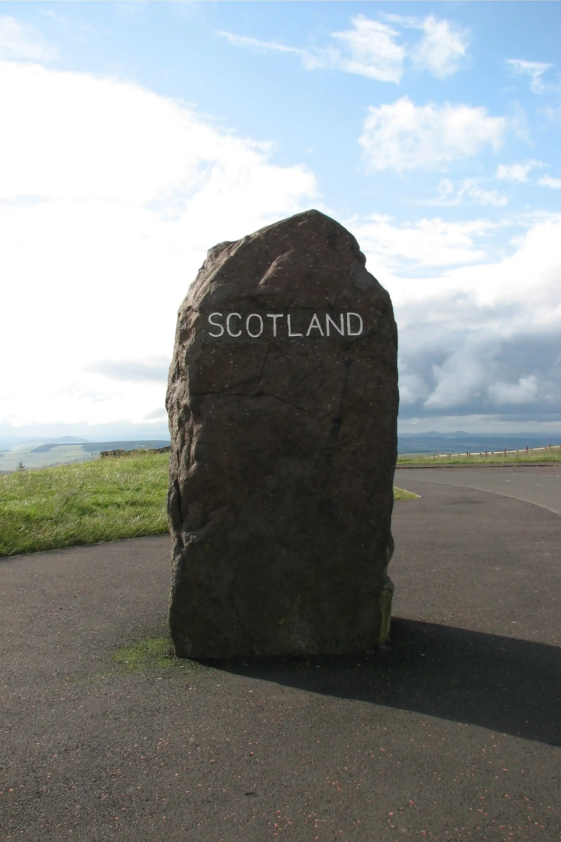 Но вот мы уже на границе с Шотландией. Граница отмечена придорожным камнем.