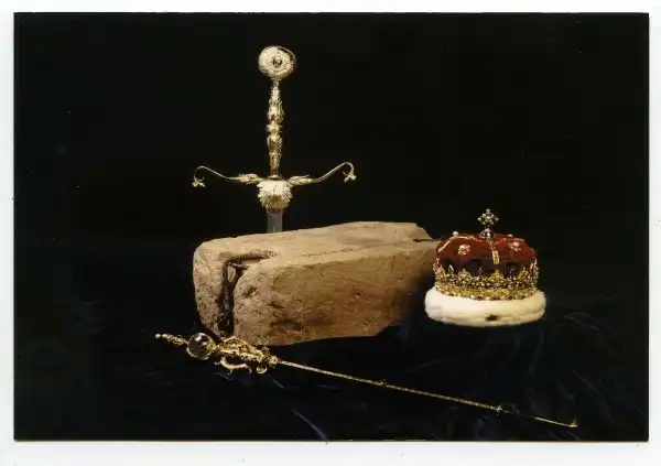 На фотографии ниже представлены королевские регалии Шоландии и “Камень судьбы”, на котором короновались короли Шотландии.