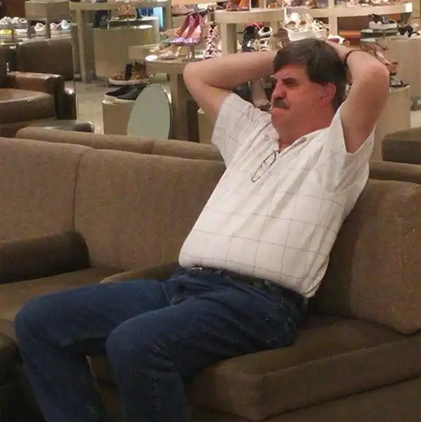 Instagram-аккаунт Miserable Men собрал красноречивые фото-свидетельства: мужья, сыновья, бойфренды и отцы семейств в томительном ожидании своих дам, застрявших у зеркала или у соблазнительных полок с косметикой.