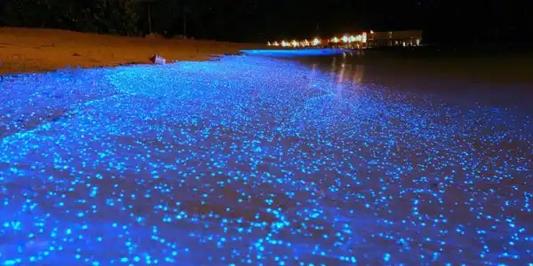 21. Светящийся фитопланктон на побережье острова Вааду, Мальдивы.