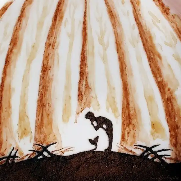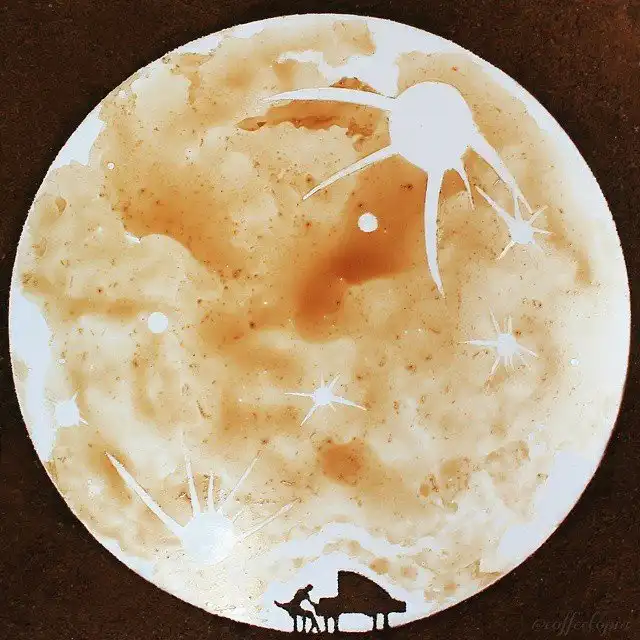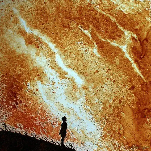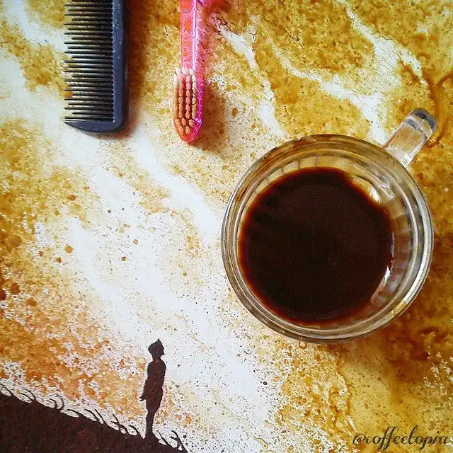 Художник и раньше экспериментировал с кофе: рисовал на пенке латте и капучино.