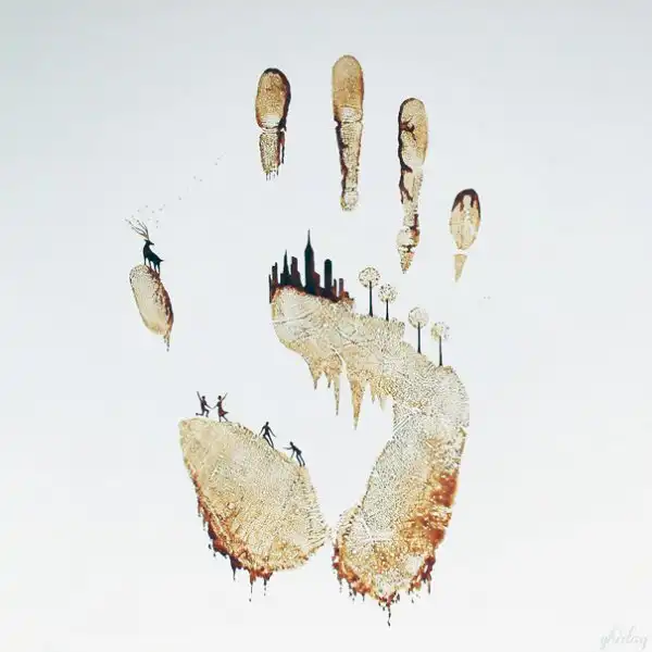 Обычно Гида пишет картины из оставшегося утреннего кофе, так, ни капля его любимого напитка не пропадает зря.
