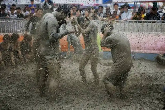 Ежегодно в Южной Корее на пляже города Порён собирается огромное количество людей, которые дружно барахтаются в грязи. Это мероприятие называется фестивалем Boryeong Mud Festival и пользуется большой популярностью не только у местных жителей, но и у туристов. Только в этом году на фестиваль приехало 2 – 3 миллиона иностранных туристов. Как проходит данный фестиваль, вам расскажет небольшой фотоотчет.