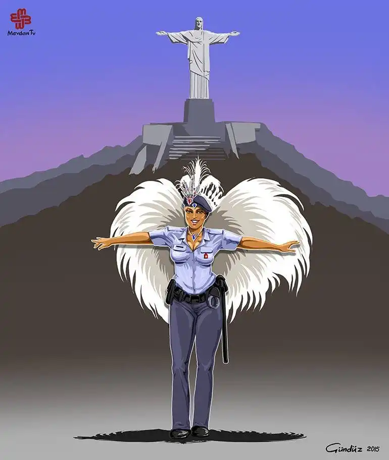 Как видит полицейских разных стран азербайджанский карикатурист Гюндуз Агаев.