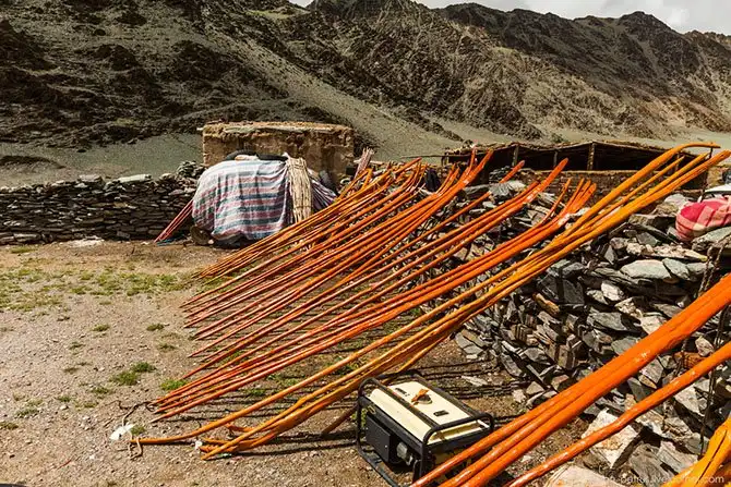 Во дворе кафе лежали палки на основу юрты. Свежеокрашенные, они сушились на солнце. Позже на рынке я видел продающийся каркас для юрты. За него просили 1,4 млн тугриков – около 700 баксов.