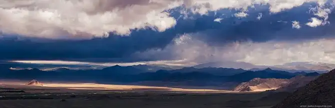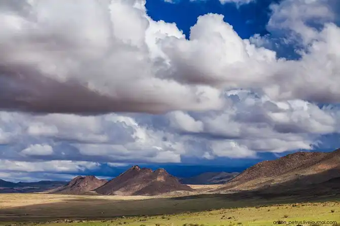 Видя из окна уазика красивейшие облака и пустынные ландшафты, хотелось останавливаться на каждом метре пути..