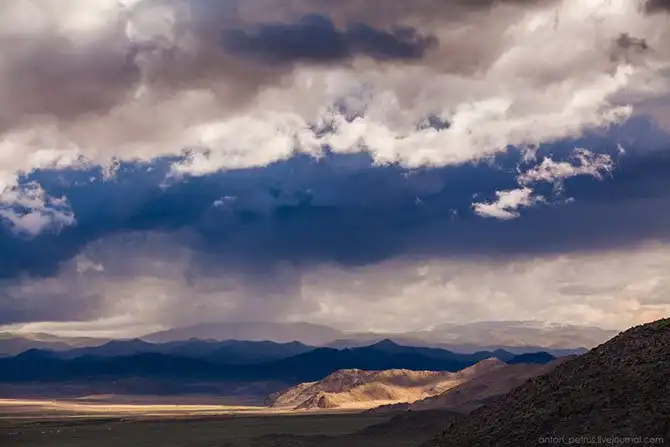 Погода портилась, но для меня она становилась все краше – на горизонте пухла грозовая туча. Огромная, лиловая, готовая обрушить на нас ливневые потоки. Вообще мы попали на какой-то местный сезон дождей, и только несколько ночей в Монголии мы спали не под стук дождя по палатке. Это дарило некоторые неудобства – сборы под дождем, разлившиеся реки. но вместе с этим – нереальную фотогеничную погоду.