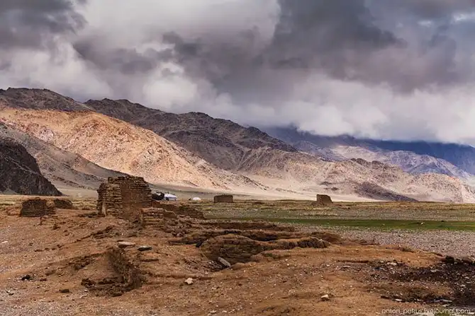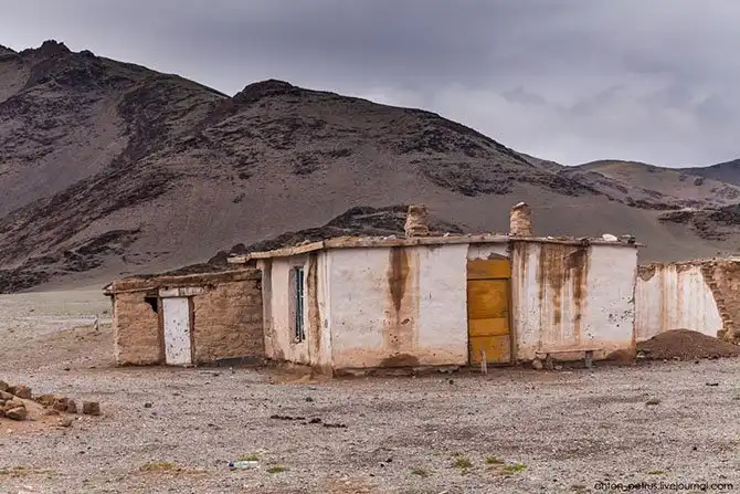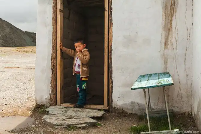 В долине был настоящий мегаполис с кучей юрт. Загадка для всех приезжих, куда же ходят монголы в туалет? Есть несколько вариантов. Первый – просто по-дальше от юрты в степь. Второй – в небольшие коробки из самана, высотой примерно метр. На фото они видны на горизонте. Впервые увидев это, был небольшой культурный шок. Как вы думаете, почему эта коробка всего метр высотой? Для полноценного туалета маловато…