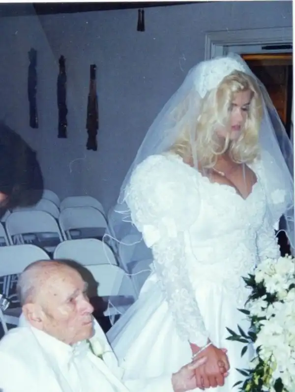 Секс-символ 90-х, американская супермодель Анна Николь Смит и ее второй супруг нефтяной магнат Джеймс Говард Маршалл II, 24 июня 1994 года.