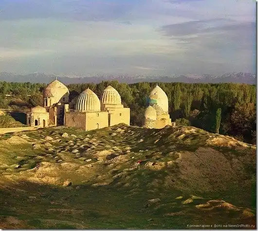 Общий вид мечети Шах-я Зинден (вечерний снимок), Самарканд. Между 1905 и 1915 годами.
