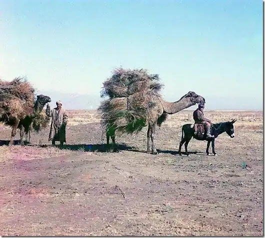 Караван верблюдов перевозит колючку на корм, Голодная степь. Между 1905 и 1915 годами.