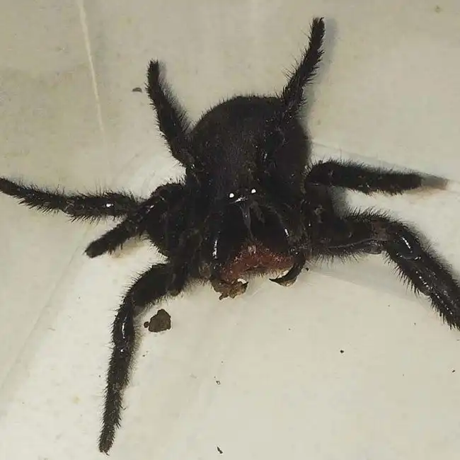 Это пауки Atrax robustus (сиднейский лейкопаутинный или воронковый паук) и "очаровательная" сороконожка, которая также была найдена во дворе.