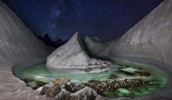 С помощью летающего дрона был обнаружен этот ледяной бассейн в Гималаях.
