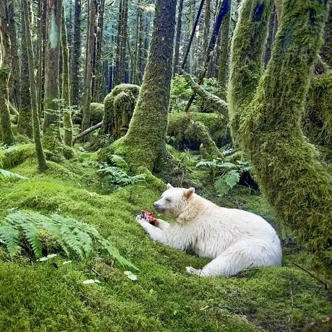 Редкий вид медведя — кермодский медведь.