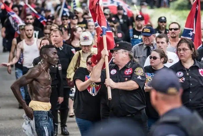 Афроамериканец на марше сторонников Конфедерации и Ку Клукс Клана