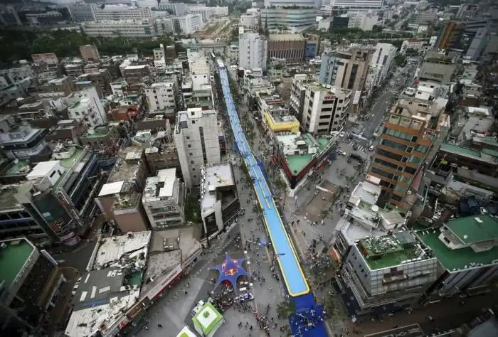 Водная горка в центре Сеула. Горка длиной 350 метров была установлена в рамках фестиваля City Slide Festa и является самой длинной в Корее.