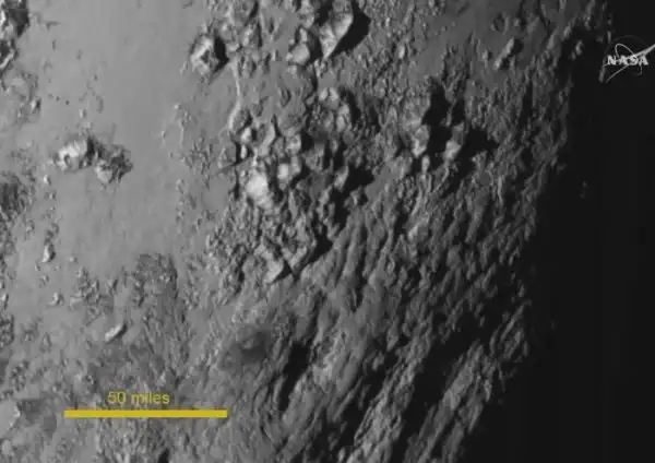 Первый снимок поверхности Плутона, сделанный крупным планом.