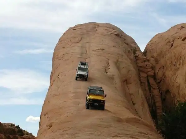 Спуск со скал на внедорожниках, город Моаб, Юта, США.