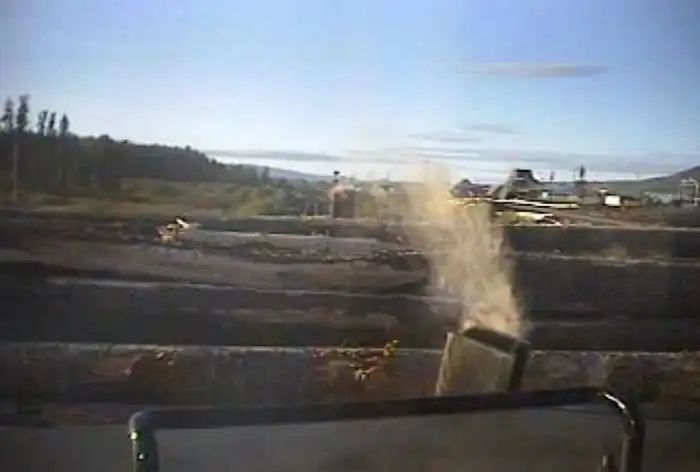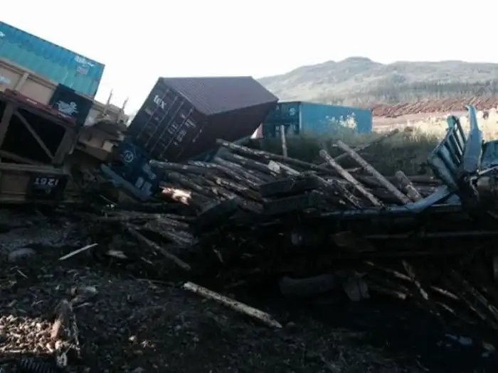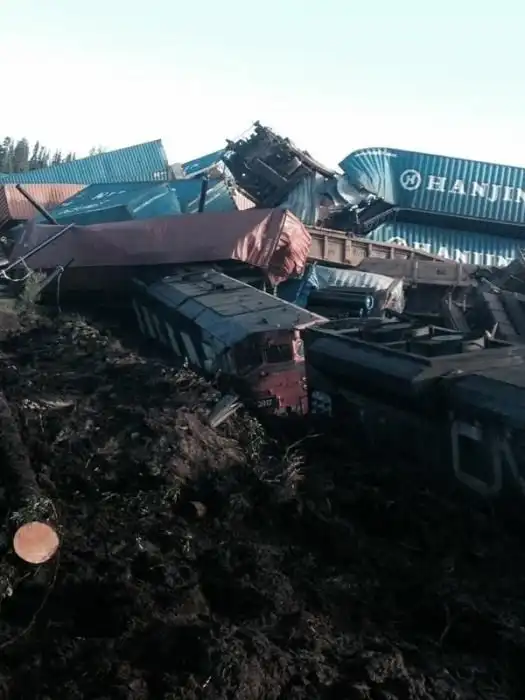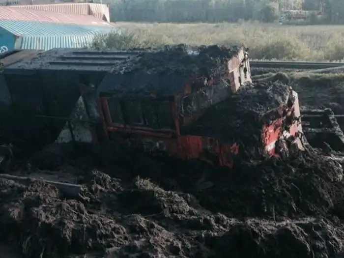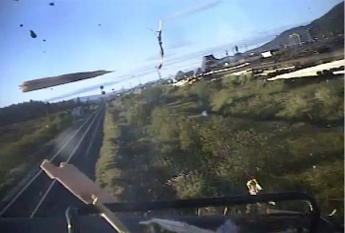 В Австралии водитель лесовоза решил проскочить через железнодорожный переезд прямо перед составом, движущимся на полном ходу. Он не рассчитал скорость движения поезда и спровоцировал серьезную аварию, в результате которой локомотив и вагоны сошли с рельс. Предлагаем вам взглянуть на все происходящее глазами машиниста, так как эти кадры были сделаны из его кабины.