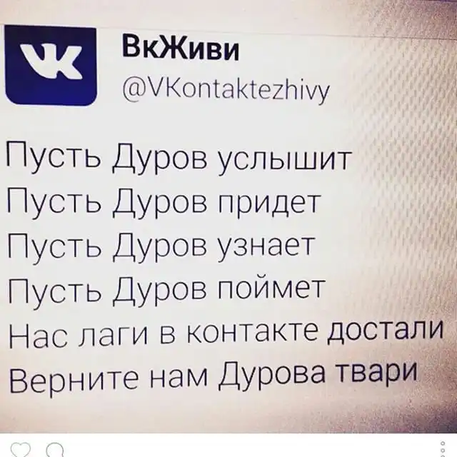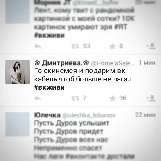 Пресс-секретарь Вконтакте сообщил, что проблема с работоспособностью сети возникла из-за разрыва одного из кабелей между дата-центрами. Посмотрим, как же люди поддерживали эту социальную сеть. Креатив так и хлещет...