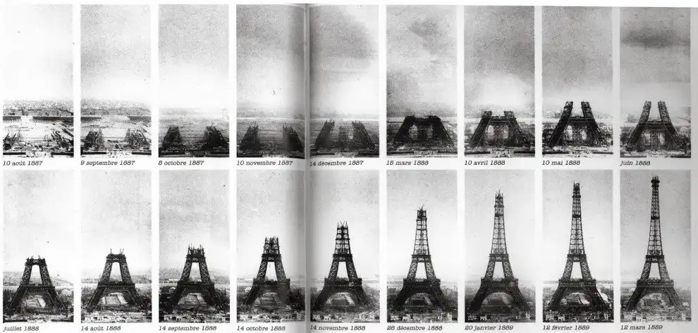 Строительство Эйфелевой башни в конце 1880-х годов.