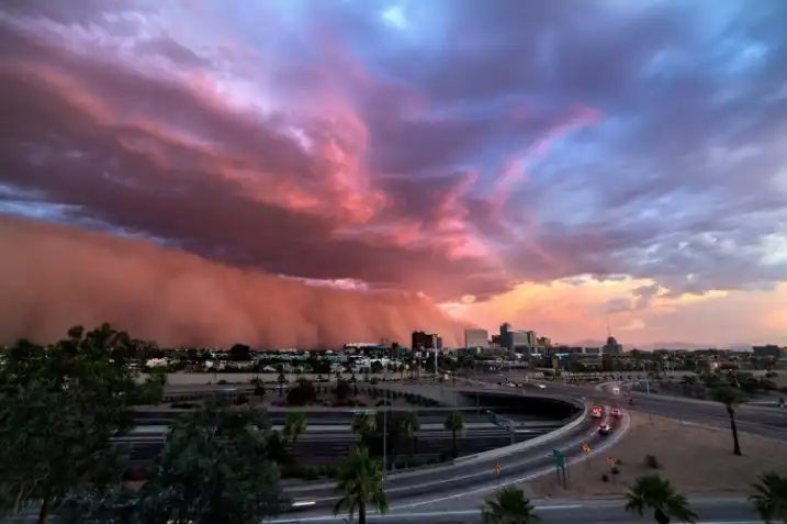 Пыльная буря и низкие облака в Финиксе, штат Аризона, 3 июля 2014 года. Фотограф: Майк Олбински (Mike Olbinski).