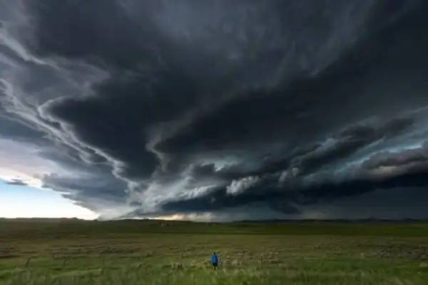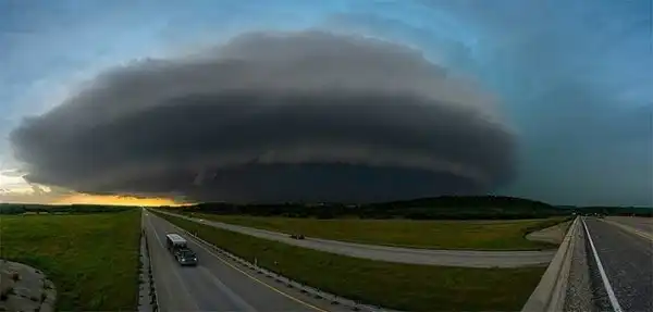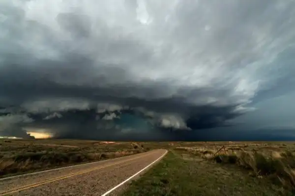 Суперячейка приближается к охотнику за ураганами недалеко от Джиллетта, штат Вайоминг, май 2014 года. Фотограф: Майк Мезьюл II (Mike Mezeul II).