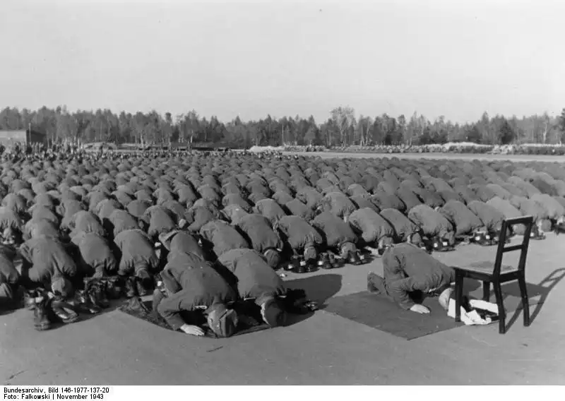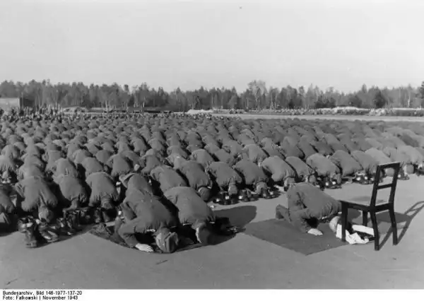 23. Бойцы мусульманской дивизии СС совершают молитву, ноябрь 1943 года.