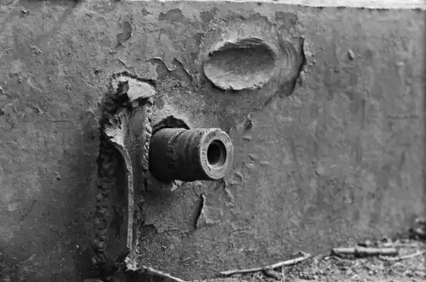15. Немецкий снаряд застрял в броне советского танка КВ-1.