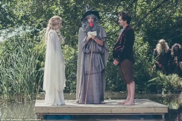 28-летний Уилл Грант выкинул свои ботинки и галстук (но не успел отрастить на ступнях достаточно волос) и перевоплотился во Фродо Бэггинса для своей свадьбы. Будучи большим поклонником фэнтези-романа Толкиена, Уилл смог убедить свою невесту 33-летнююю Эми Гандер превратить сад их дома в Средиземье.