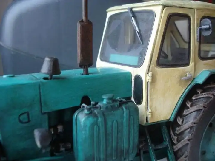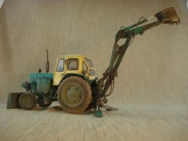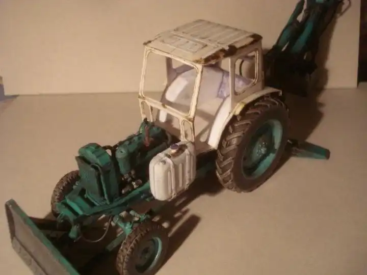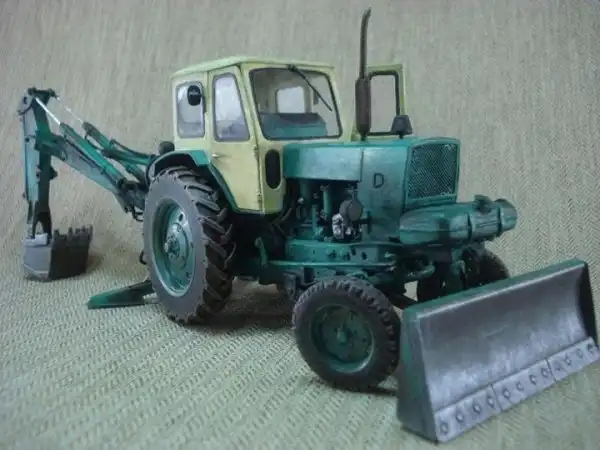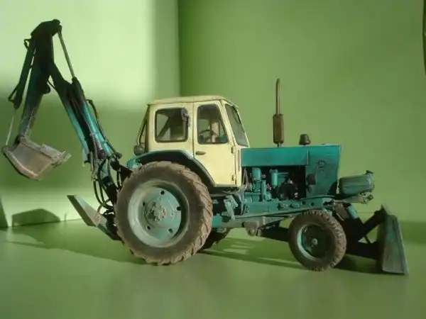 Впечатляющая модель трактора выполненная из бумаги и картона с потрясающей детализацией. У трактора вращаются и поворачиваются колеса, открываются двери, поднимается капот, а также стрела с ковшом. К сожалению нет информации о том, сколько было потрачено времени на создание этой модели, но во всяком случае не мало. Автор работы Олег Малиш.