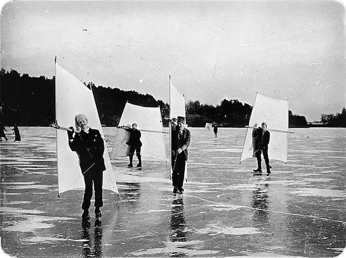 Катание на коньках под парусом. Швеция, конец 19–го столетия