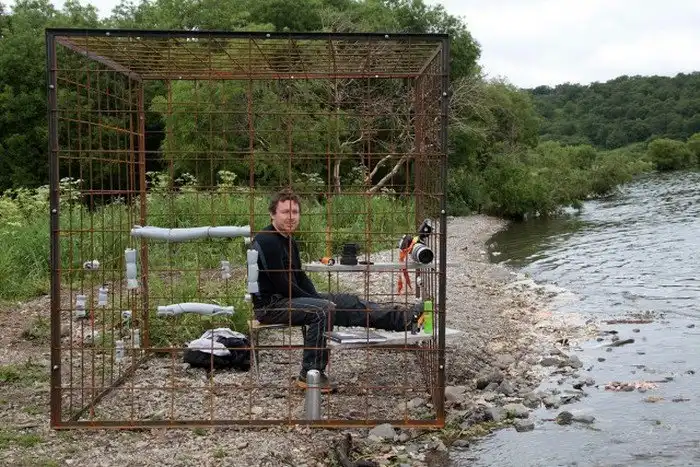 Для этого собирают вот такую клетку, в которой фотографу приходится терпеливо дожидаться прибытия животных.