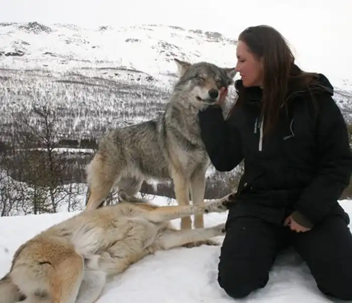 В дикой природе норвежские волки являются очень опасными: в среднем за год стая волков убивает около сотни лосей ради пропитания, а человек на порядок меньше и беззащитнее 500-килограммового парнокопытного. Тем удивительнее этот парк, где столь грозные хищники не нападают, а наоборот, играют с людьми.