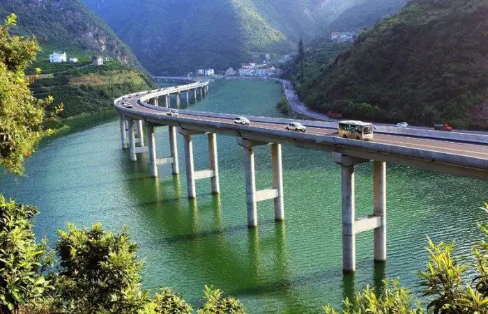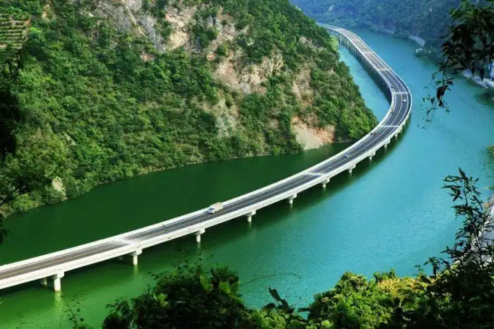 9 августа в китайской провинции Хубэй началась эксплуатация нового моста, который называют первым в Китае «экологическим шоссе». 4-километровый мост-шоссе прошел прямо по руслу реки в обход леса, который не стали вырубать.