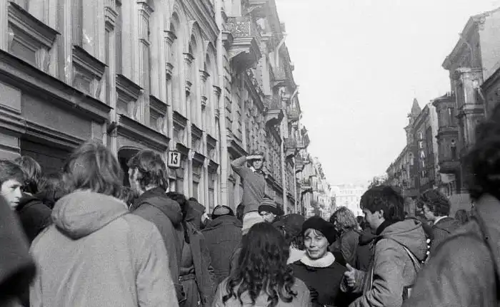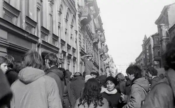 Борис Гребенщиков высматривает кого–то на улице, 1987 г.