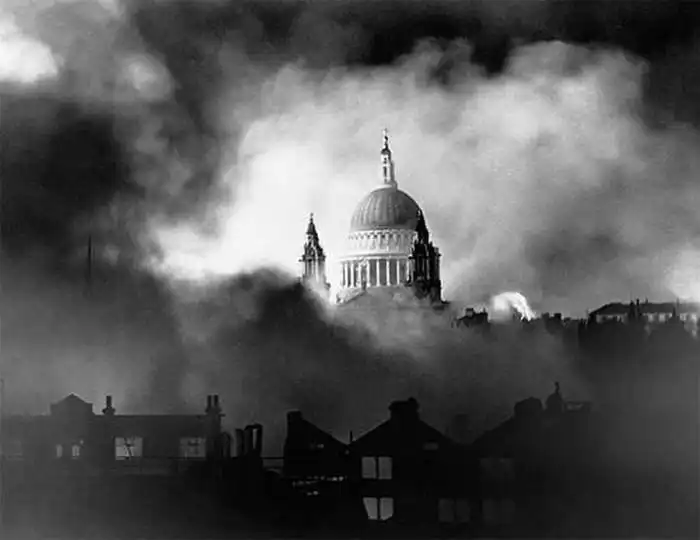 Во время немецкой бомбардировки 29 декабря 1940 Собор Святого Павла практически не пострадал. God save the Queen and St Paul's Cathedral